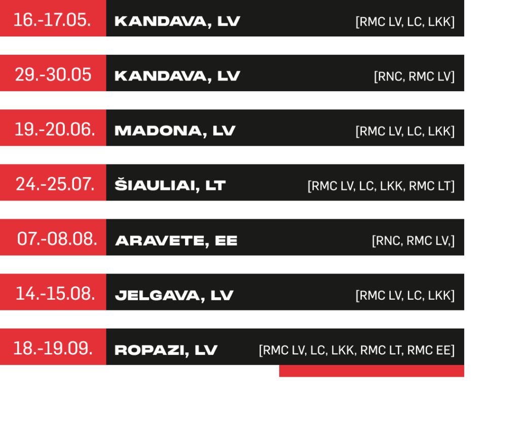 2026 RACE CALENDAR FOLLOW US Facebook Instagram Youtube We’re excited to announce the 2026 Rotax Max Challenge Latvia season, featuring 7 action-packed rounds across the Baltic region. NEWS SEASON OPENER 2026 March 31, 2026 2026 CALENDAR January 8, 2026 TIRE USE FOR ROUND 4 and RNC Round 3 July 31, 2025 GALLERY Click here